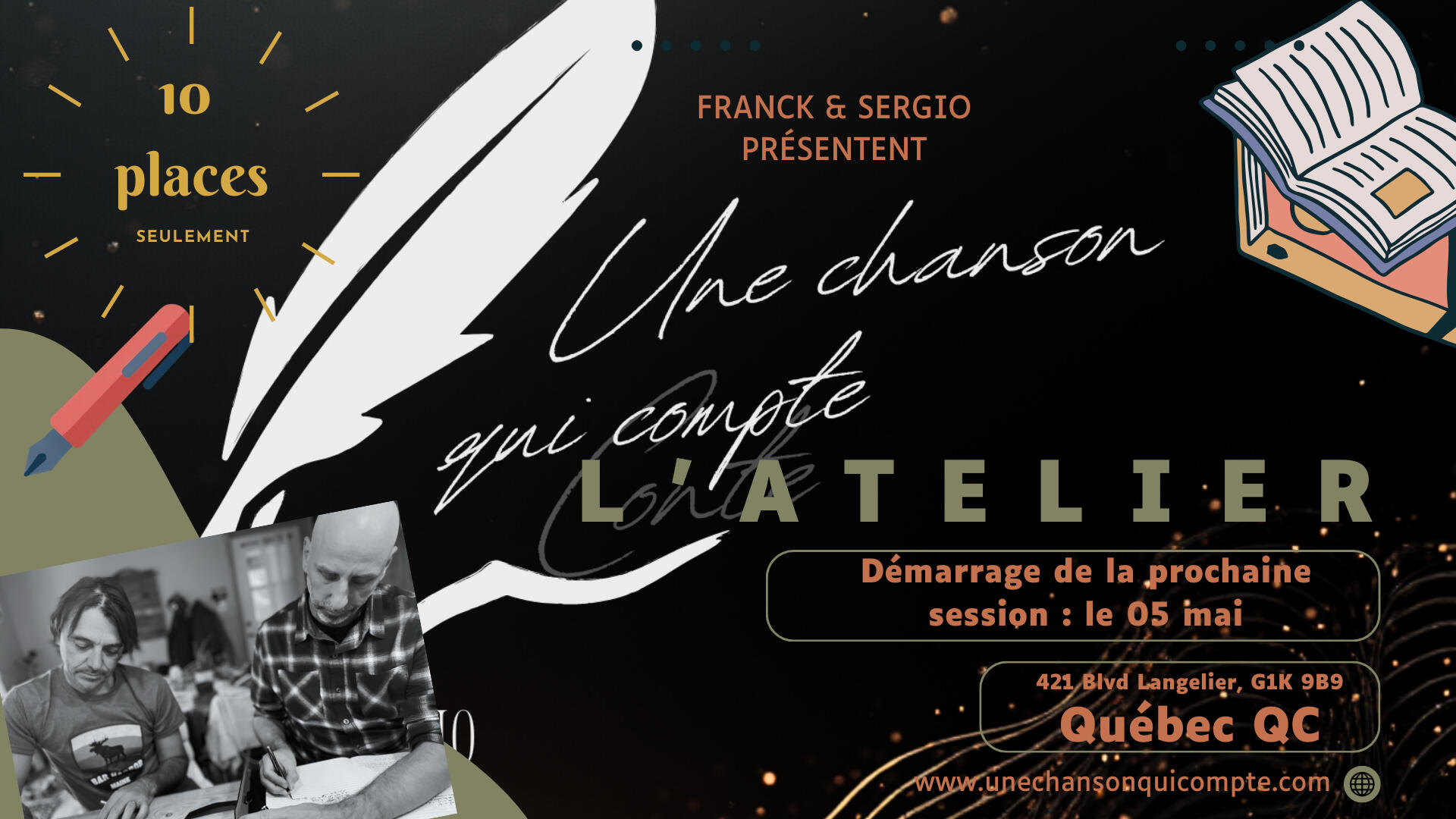 par Franck Humbert et Serge Ouellet, opérant sous le nom "Une Chanson qui Compte".Adresse : 1224 Avenue Maguire